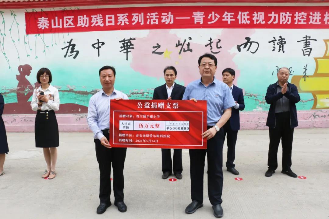 ? ? ? ? 羊樓小學趙光明校長首先向舉辦此次活動的殘聯(lián)、泰安光明愛爾眼科醫(yī)院表示了感謝:“感謝殘聯(lián)與泰安光明愛爾眼科醫(yī)院給學生安排的免費檢查和相關(guān)資助,讓學生們意識到愛眼護眼的重要性,也讓我和在座老師對校園內(nèi)的各年級、各班級的近視狀況有了清晰直觀的了解,以后學校將提高對校園低視力防控問題的重視,督促學生養(yǎng)成愛護眼睛、定期眼睛檢查的好習慣!”
